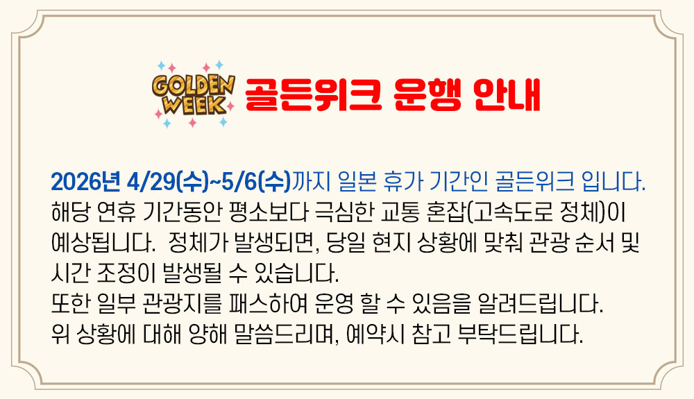 하지만 지하철로 다니기 쉬운 오사카와 달리 열차와 일반 버스를 타고 다녀야 하는 불편함이 있는 교토와 나라. 어떻게 여행해야 할지 고민하셨다면 교토 & 나라 일일 버스 투어를 추천해요! 오사카에서 출발해 교토와 나라의 관광지 중 가장 가볼 만한 곳 4곳을 추스려서 아름다운 추억을 가득 만들어드립니다. 자 이제 와그와 함께 볼거리가 가득한 교토 & 나라로 떠나보실까요?