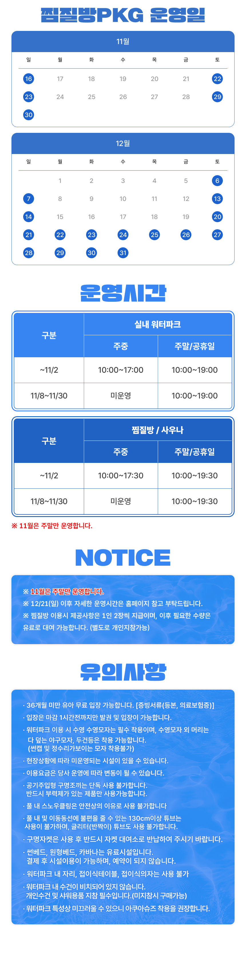 찜질방 : 오전 10:00 ~ 오후 19:30 (주중 미운영)