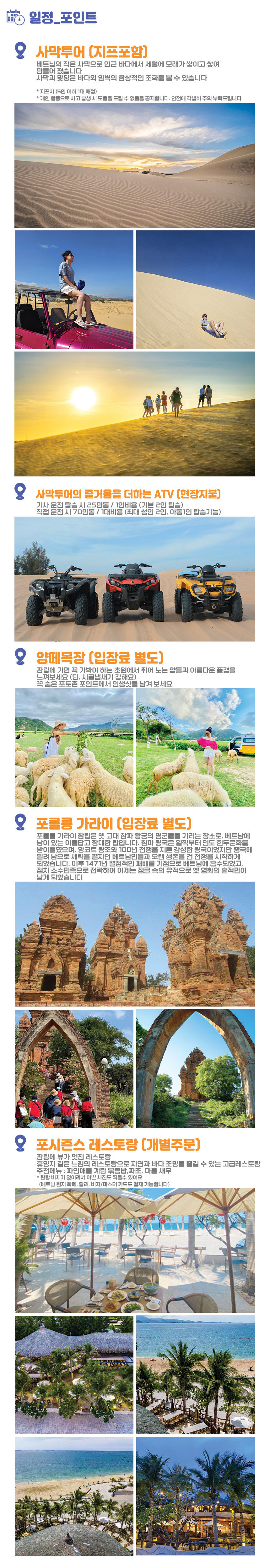 나트랑 사막투어라고 하면, 많은 분들이 무이네 지역 투어를 생각하시죠. 무이네는 아름다운 사막과 선셋이 공존하는 지역이지만, 나트랑에서 긴 이동시간을 감수해야 한다는 단점이 있어요.