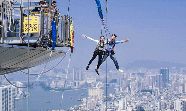 번지점프와 스카이점프, 그리고 스카이워크까지! 마카오 타워에서 즐길 수 있는 가장 짜릿하고 인기 있는 3종 액티비티에 도전해 보세요.