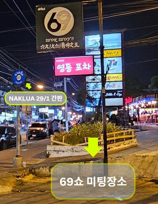 구글지도에서 "영동포차 파타야" 한글로 검색하시면 미팅 장소 확인 가능합니다.