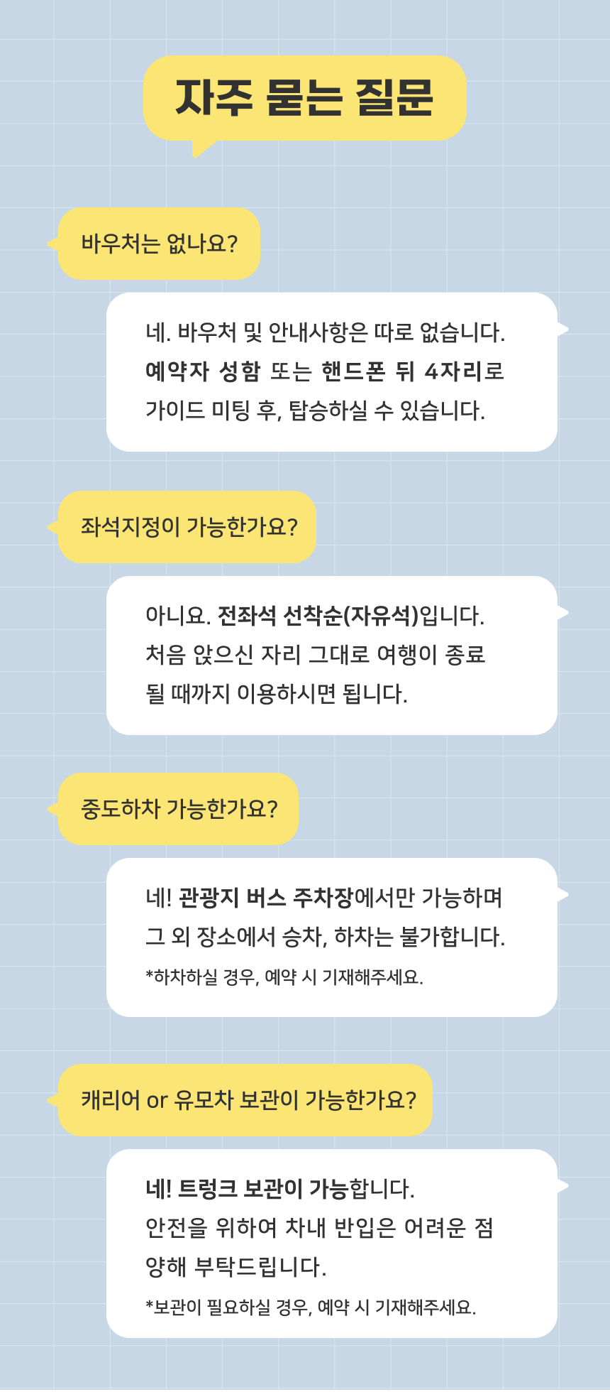 * 당일 미팅 시간에 늦으시는 경우 노쇼로 간주되는 점 양해 부탁 드립니다.