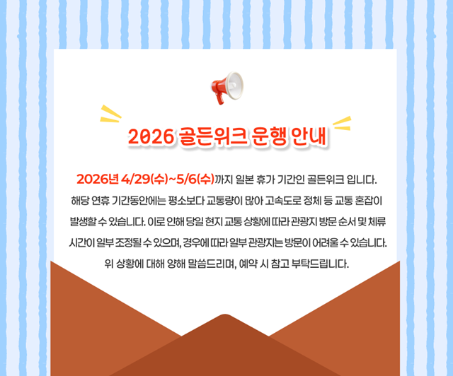 * 오전 7시 40분 정각에 출발하니, 여유롭게 20분 전까지 도착해 주시기 바랍니다.