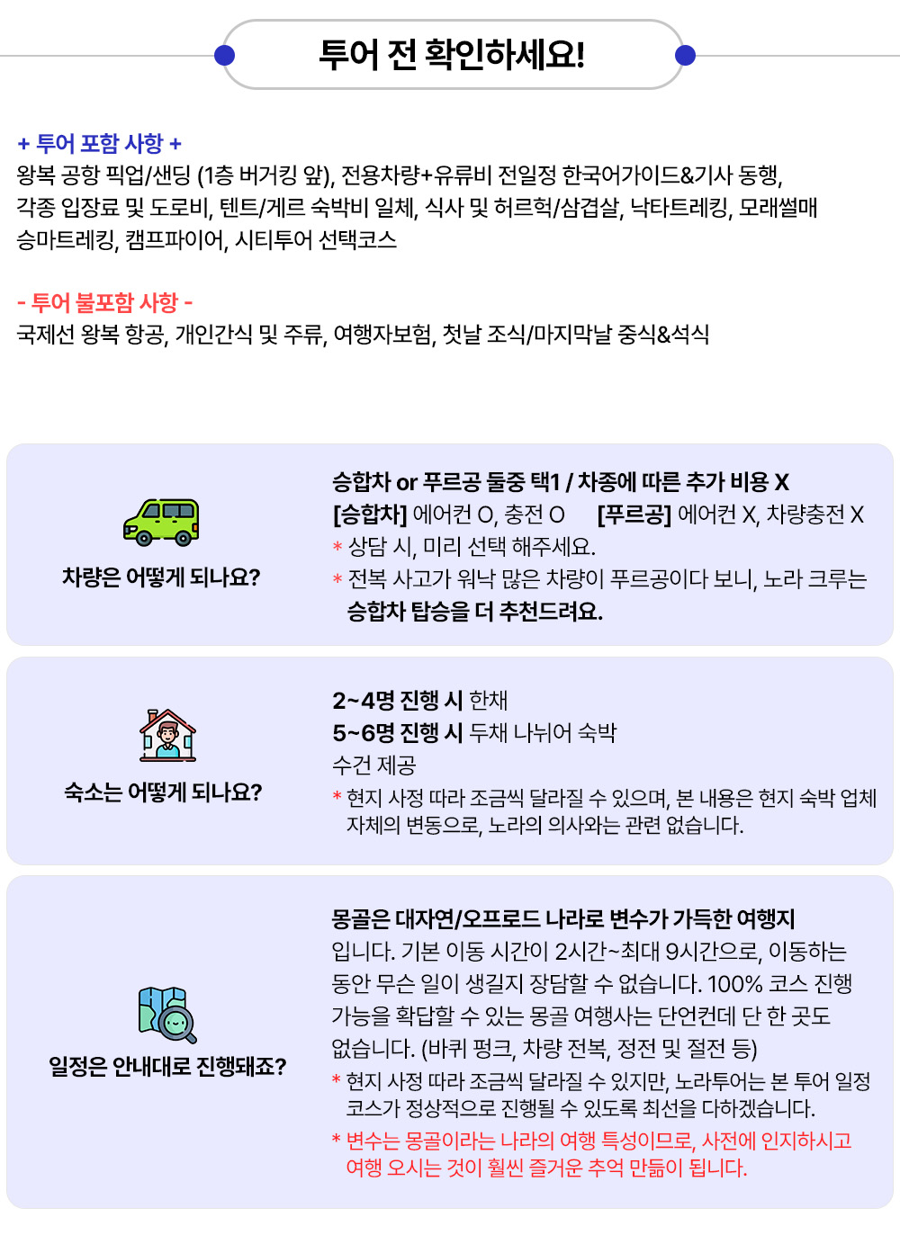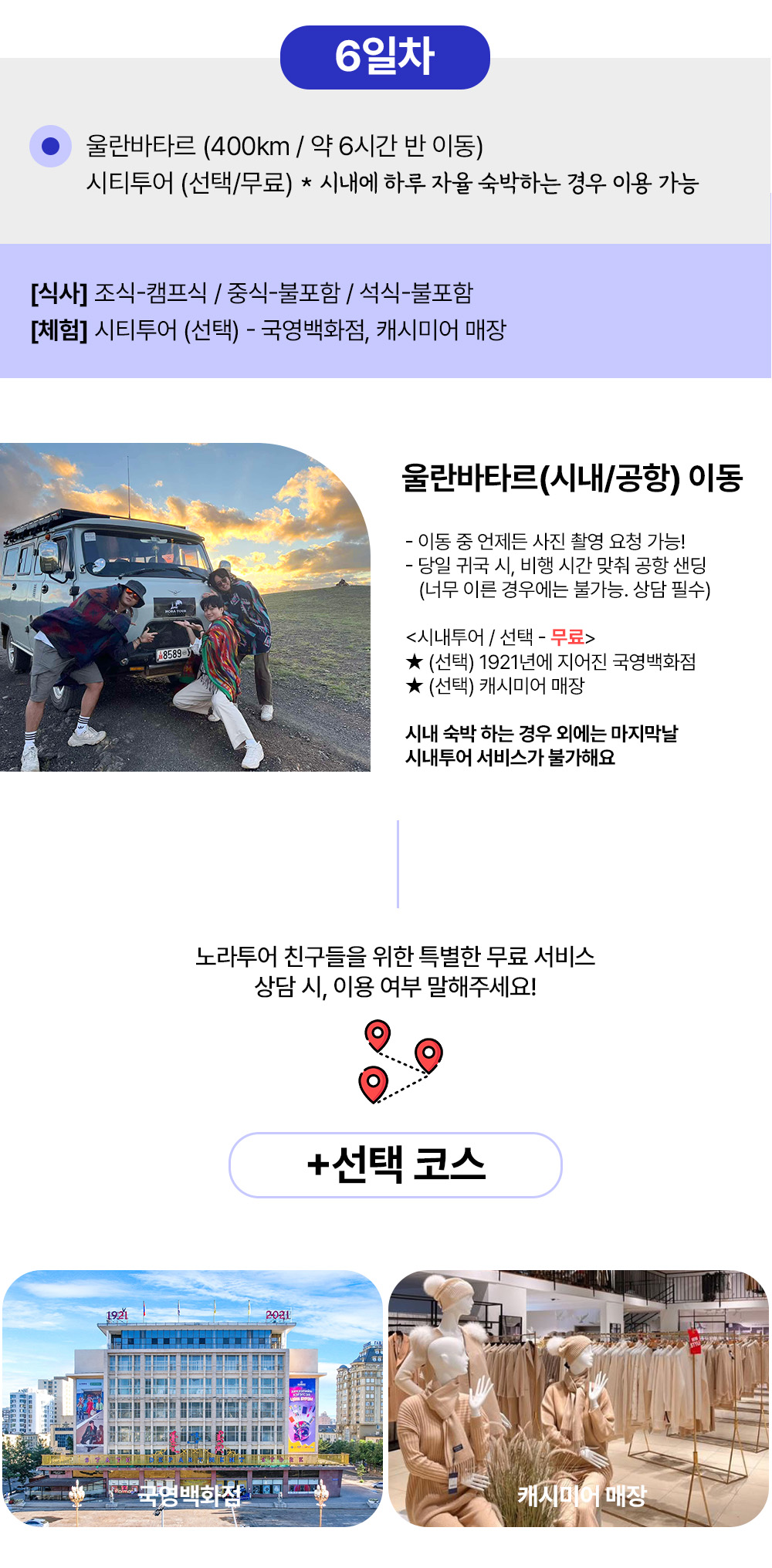 공항 또는 울란바토르 내 투숙하는 숙소에서 픽업