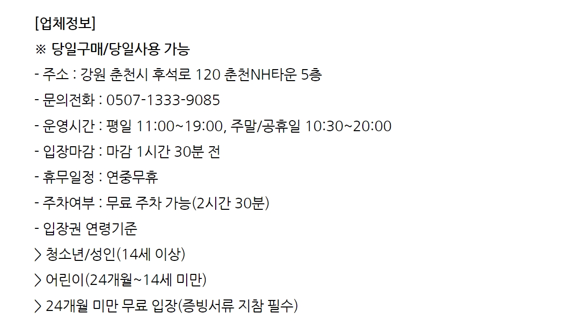 강원도 춘천시 후석로 120 플레이정글 5층 NH타운 ENTA 5층