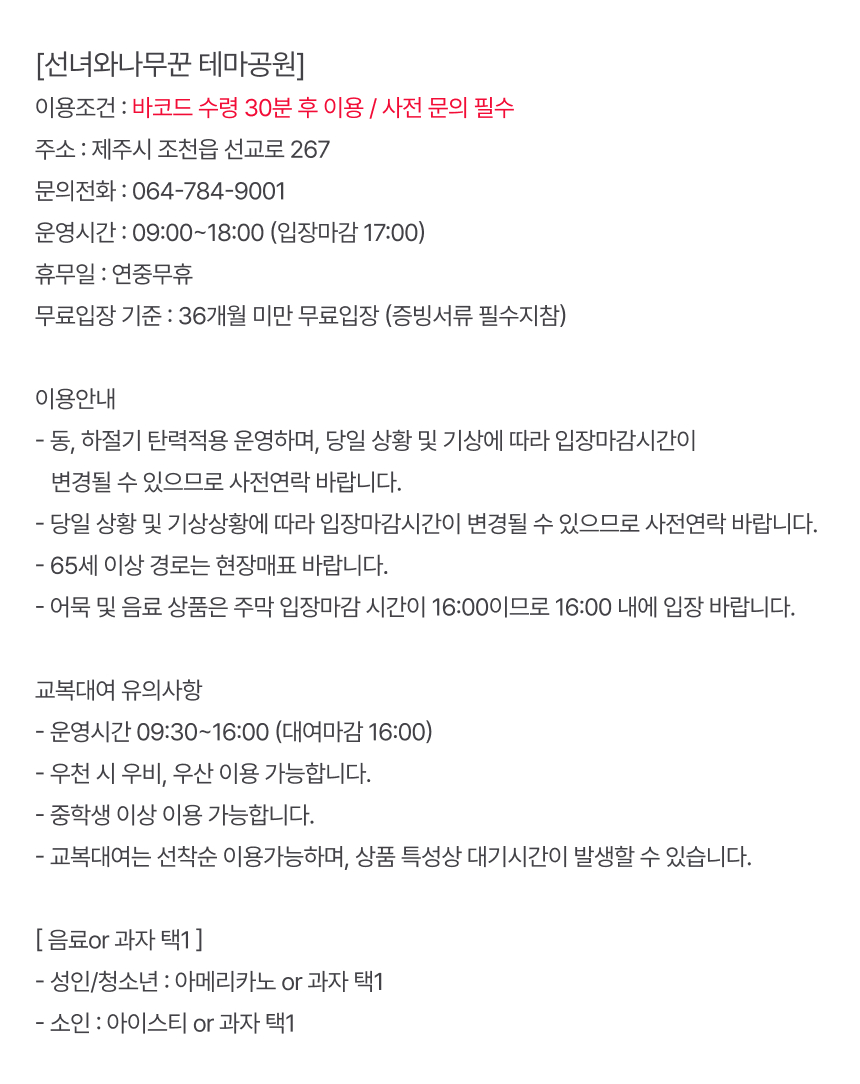 당일 상황 및 기상 조건에 따라 입장 마감 시간이 변경될 수 있으므로 업체 사전 문의를 권장합니다.