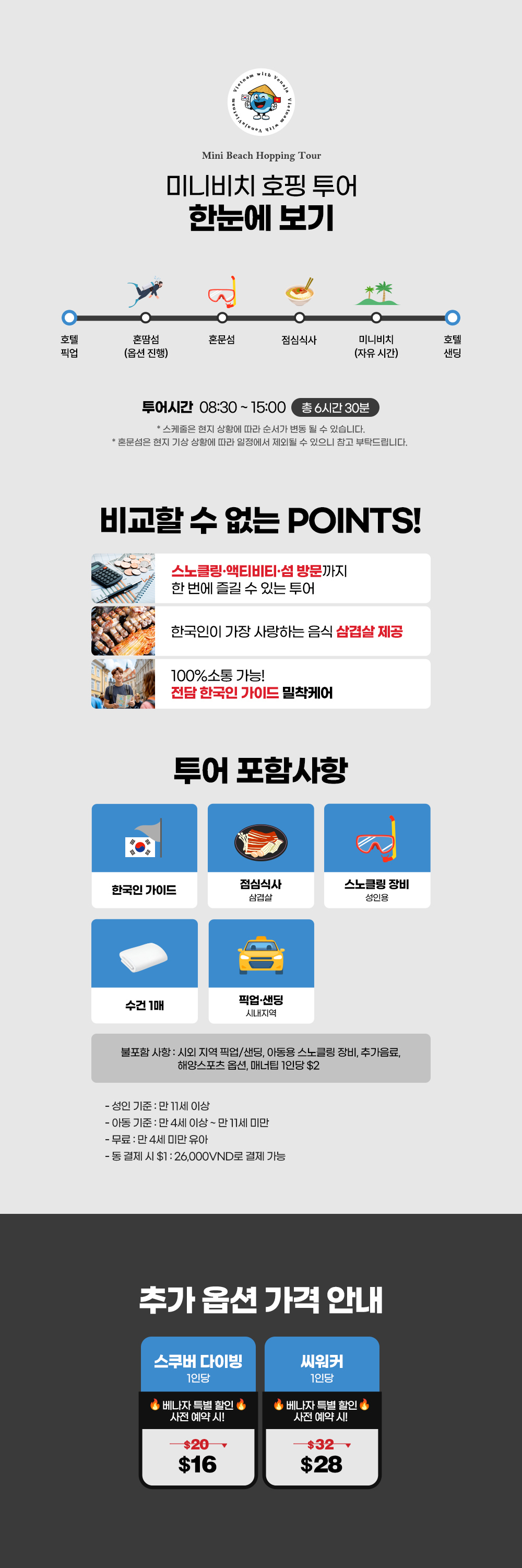 * 정확한 미팅 시간은 투어 전날 베트남 현지 시각 오후 7시 이전에 안내해 드려요.