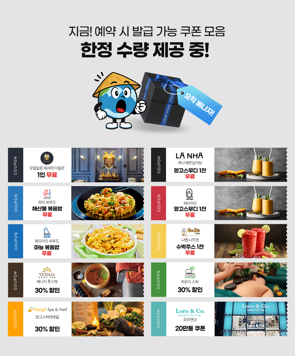 오랜 비행으로 쌓인 피로를 풀 수 있는 건 물론, 현금을 환전하거나 롯데마트에서 필요한 물건을 쇼핑할 수 있는 일정까지 있어 나트랑 여행의 첫 시작으로 추천드려요.