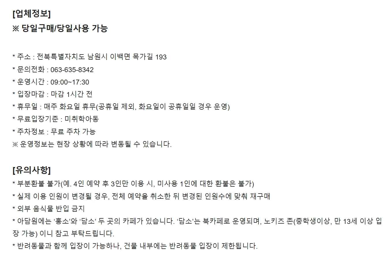 입장마감 : 마감 1시간 전
