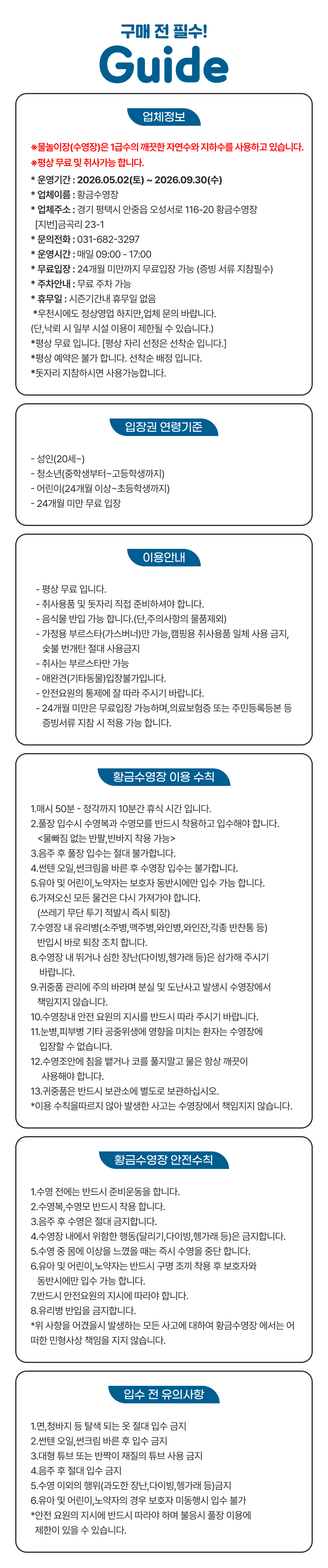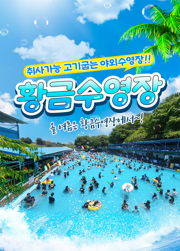 한국어 제공여름철 무더위를 시원하게 날려보낼 수 있는 평택의 깨끗한 지하수 야외수영장, 황금수영장에 방문해 신나는 물놀이를 즐겨보세요.