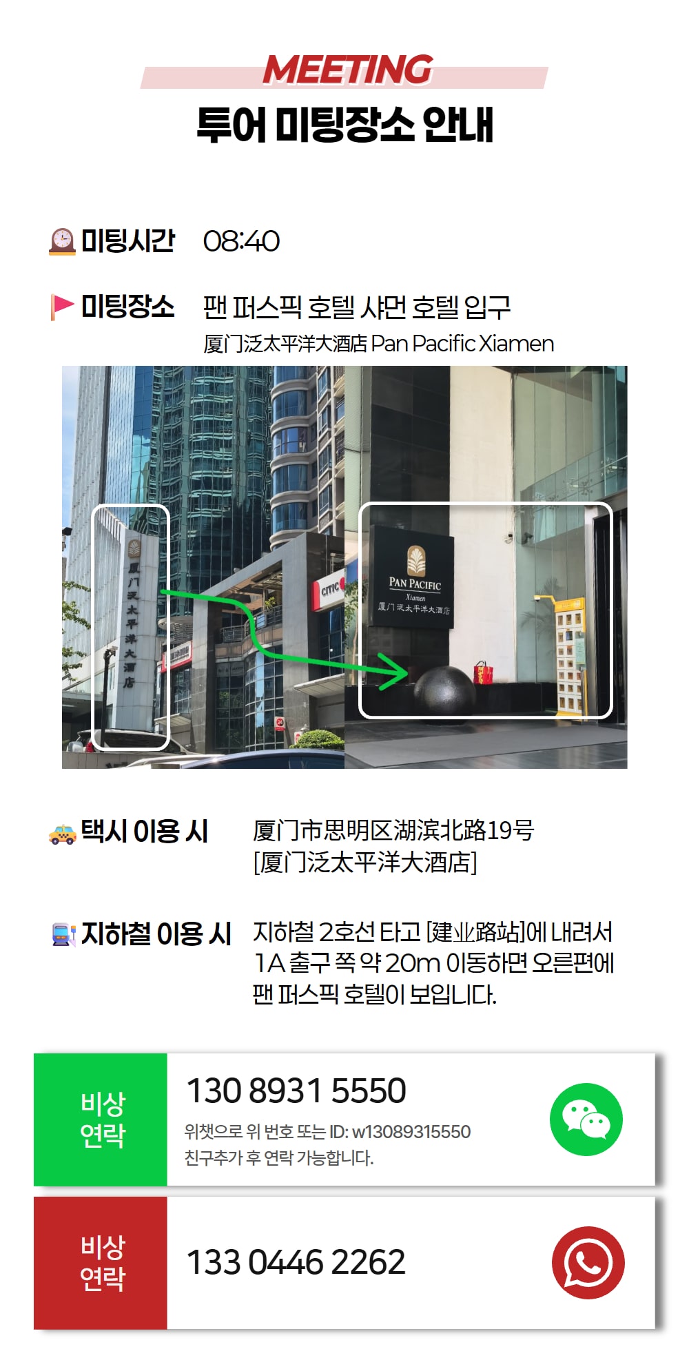 * 택시이용 주소지(중문주소) : 厦门市思明区湖滨北路19号[厦门泛太平洋大酒店]