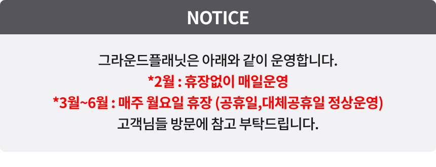 ※ 9월 부터 매주 월요일 휴장 (10/6일 휴장)