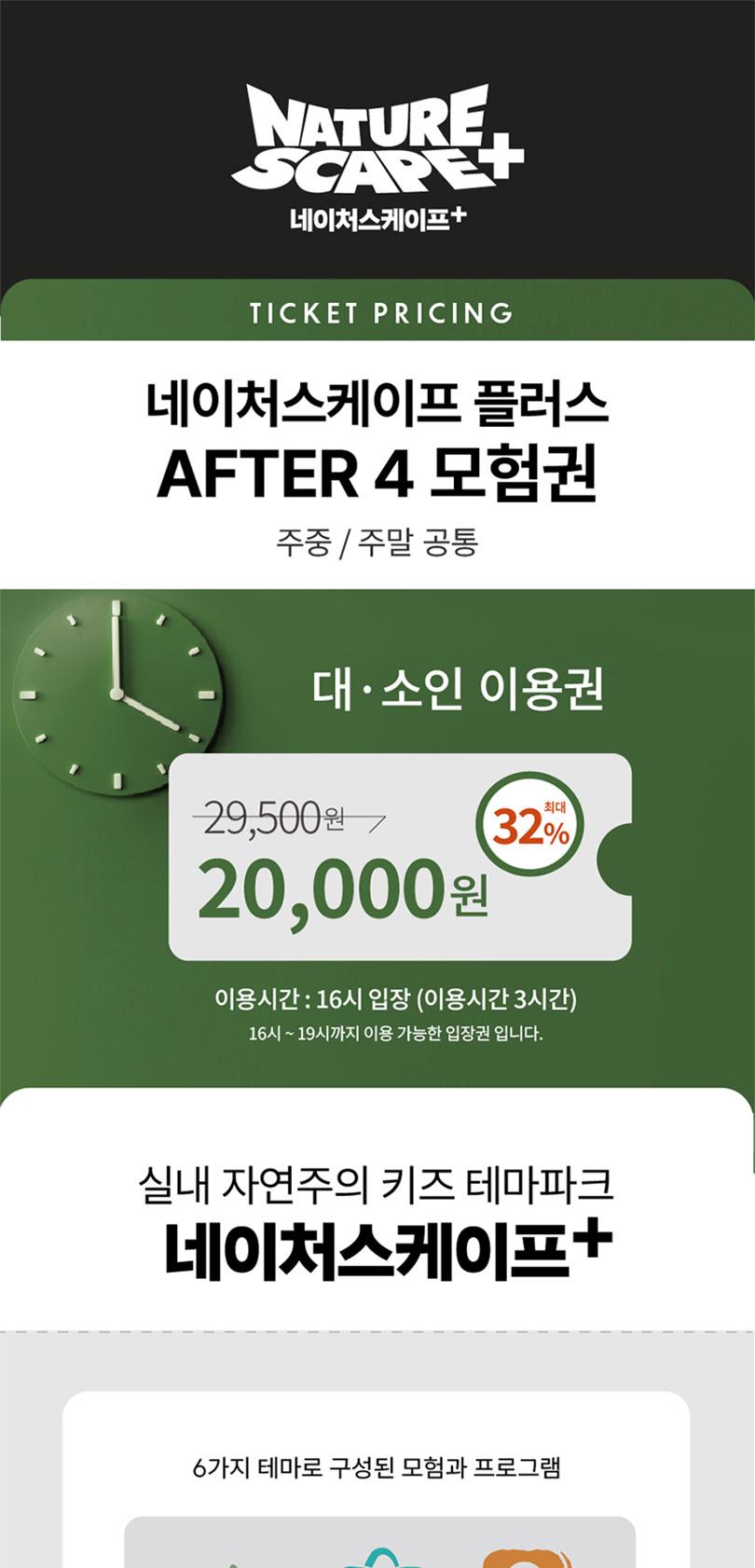 한국어 제공해가 지고 어둠이 내리기 시작할 때, 경기 동탄 라크몽 '네이처스케이프 플러스'의 숨겨진 마법이 깨어나요! 오후 4시 이후 입장 가능한 'AFTER 4 모험권'으로, 도심 속에서 빛과 소리로 펼쳐지는 더욱 신비롭고 몽환적인 자연의 세계를 특별하게 경험해 보세요. 낮과는 또 다른 감동이 여러분을 기다리고 있어요.