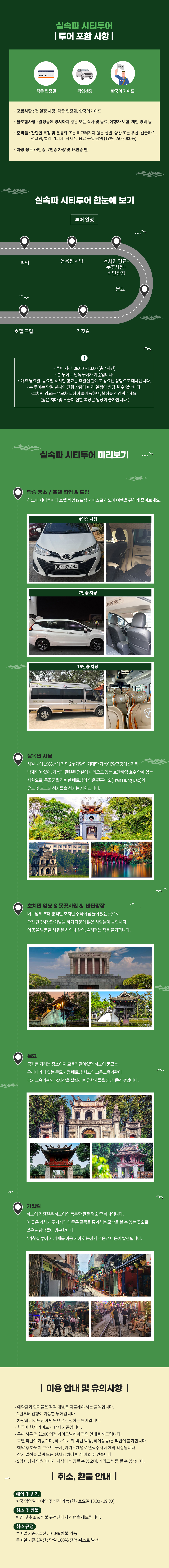 이 투어는 한국어 가이드와 함께 하는 단독 투어로 진행되기 때문에, 친절한 현지 가이드가 관광지에 대해 설명해주고 우리 일행만 집중적으로 챙겨줘서 더욱 만족하실 수 있을 거예요. 하노이를 더 가까이 느낄 수 있는 투어를 통해 여행지가 색다르게 보이는 경험을 해보세요.