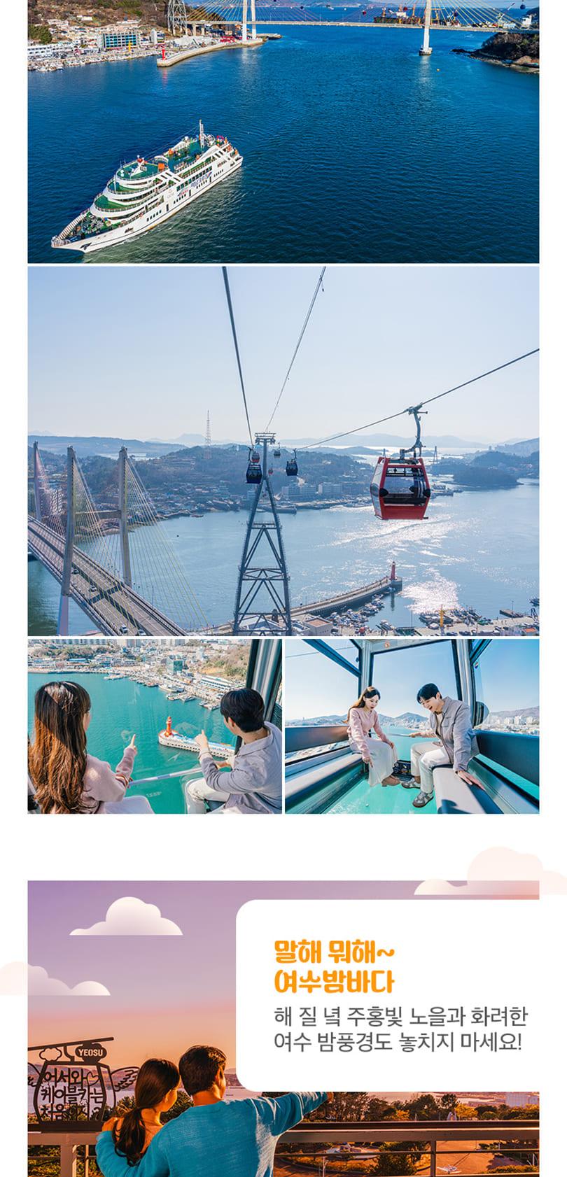 한국어 제공여수여행, 어디를 가야 즐거운 시간을 보낼 수 있을지 고민이시라면 필수코스만 쏙쏙 뽑은 패키지로 합리적이게 떠나보세요. 해당 패키지로 아쿠아리움뿐만 아니라 다양한 즐길거리가 가득한 아쿠아플라넷 여수와 케이블카 탑승객 수 전국 1위가 증명하는 뷰맛집, 여수해상케이블카를 이용할 수 있어요.