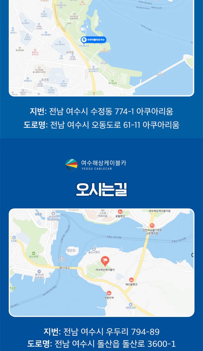 ※ 당일 운행여부와 운행시간은 변동될 수 있으니 방문 전 여수케이블카 홈페이지 참고 바랍니다.