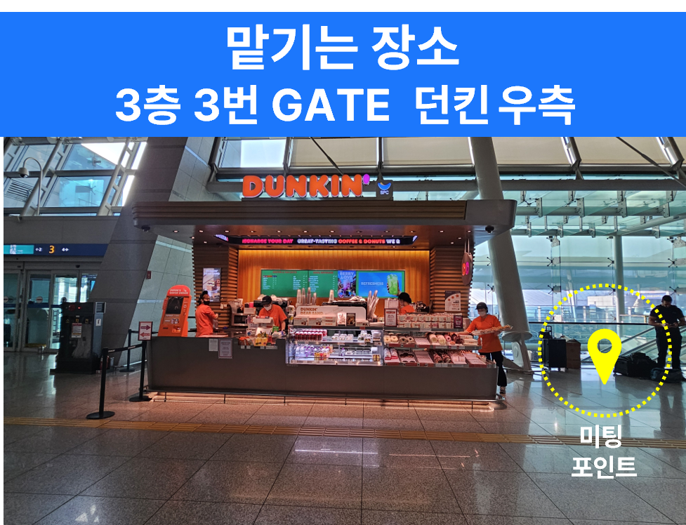 T1 의류 맡기는 곳 : 인천공항 제1터미널 3층 3번 게이트, 던킨도너츠 우측 (인천공항 지도 보기 / 위치 상세 사진 보기)