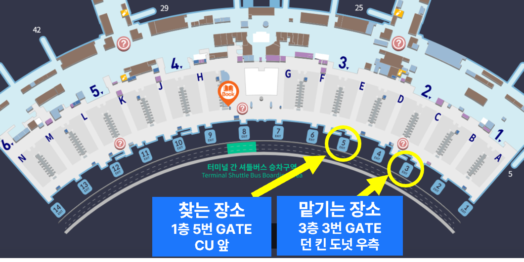 T1 의류 찾는 곳 : 인천공항 제1터미널 1층 5번 게이트, CU앞 (인천공항 지도 보기 / 위치 상세 사진 보기)