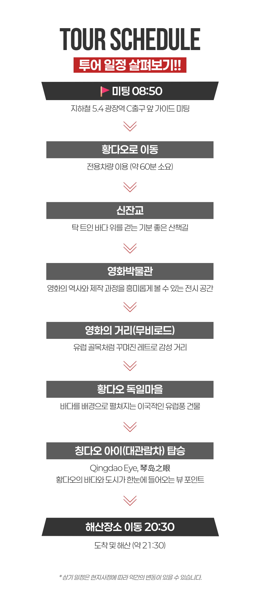 그리고 이번 투어의 특별한 점, 바로 일정에 포함된 모든 곳이 포토 스팟이에요! 특히 중국의 옛 거리를 재현한 세트장에서 영화 속 한 장면같은 사진까지 꼭 남겨보세요!