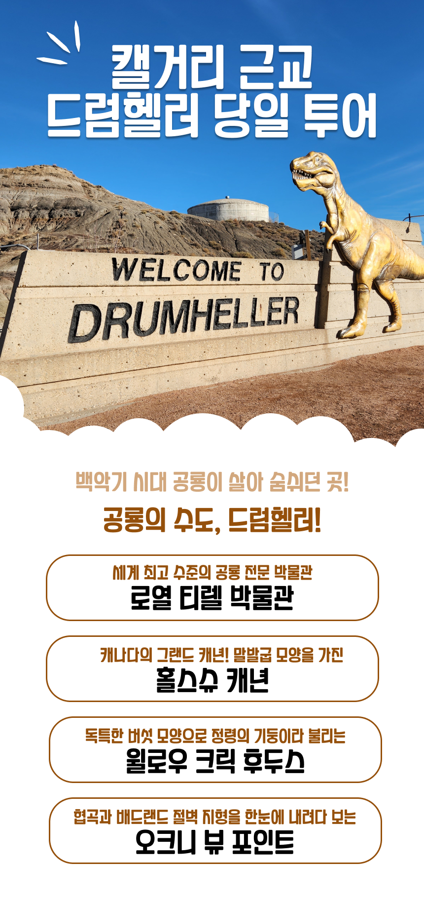 수백만 년의 자연 침식이 만들어낸 장엄한 풍경을 감상할 수 있는 곳과 캐나다 탄광 역사를 간직한 곳곳을 둘러봐요. 협곡 아래로 내려가면서 대자연의 웅장함과 고요함을 온전히 느낄 수 있어요. 이 투어는 자연의 경이로움을 탐험하며 알버타의 숨은 명소를 둘러보고 싶어 하는 여행자들에게 완벽한 여정입니다. 드림캐쳐 홀슈스 캐년과 후두스 투어와 함께 잊지 못할 추억을 만들어 보세요!