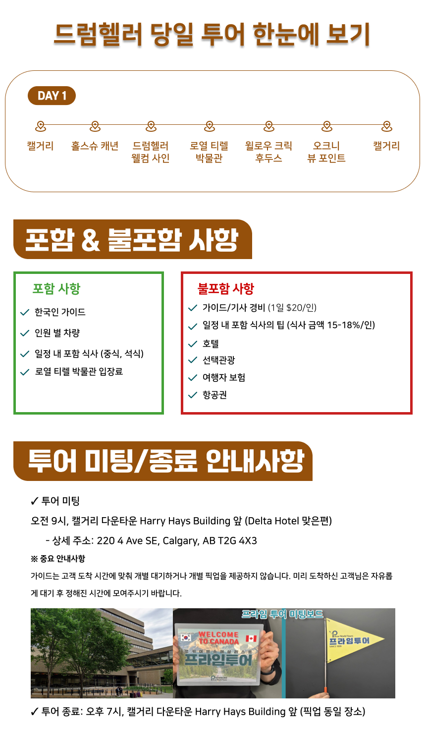 * 가이드는 고객 도착 시간에 맞춰 개별 대기하거나 개별 픽업을 제공하지 않습니다. 미리 도착하신 고객님은 자유롭게 대기 후 정해진 시간에 모여주시기 바랍니다.