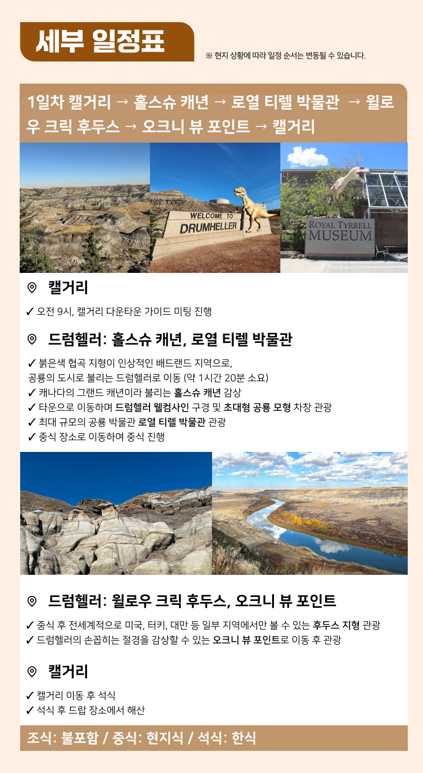 한국어 제공캐나다 알버타 주의 숨겨진 보석 같은 명소들을 탐험할 수 있는 홀슈스 캐년과 후두스 투어에 초대할게요!