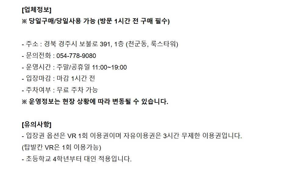※ 운영정보는 현장 상황에 따라 변동될 수 있습니다.