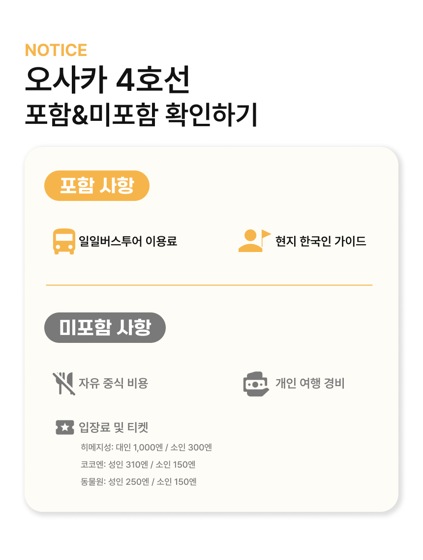 취소가능🚌신나게 떠나는 와쿠와쿠 버스 투어🚌 ❤️와쿠와쿠버스에서만 드리는 혜택❤️ ✨인원 수에 따른 버스변경 NO! 오로지 대형버스로만 운행✨ ✨여행 중 지루할 틈 없는 와쿠와쿠 365 퀴즈 이벤트 진행✨ ✨재방문 여행자님께 드리는 소소하지만 정성 가득한 지역 특산 선물✨ ✨특별 제작한 QR 여행지도 & 돈키호테 할인 쿠폰 제공✨ 설렘 가득한 오사카 여행을 와쿠와쿠버스와 함께 떠나보세요!