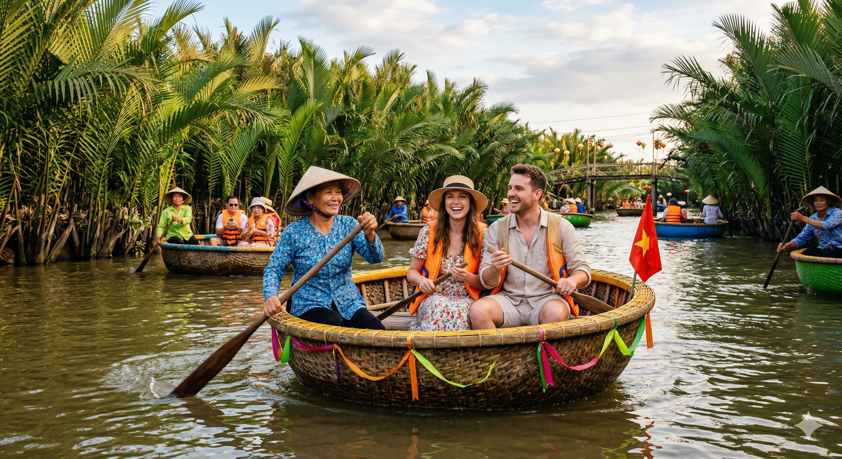 반쎄오, 월남쌈, 쌀국수와 같은 베트남 전통 요리 만들기로 특별한 하루를 선사하는 쿠킹 클래스 포함 호이안 일일 투어를 소개해요. 오행산과 바구니배, 호이안 올드타운 등 호이안 필수 방문 코스를 구경하고 이색 투어를 즐겨보세요.