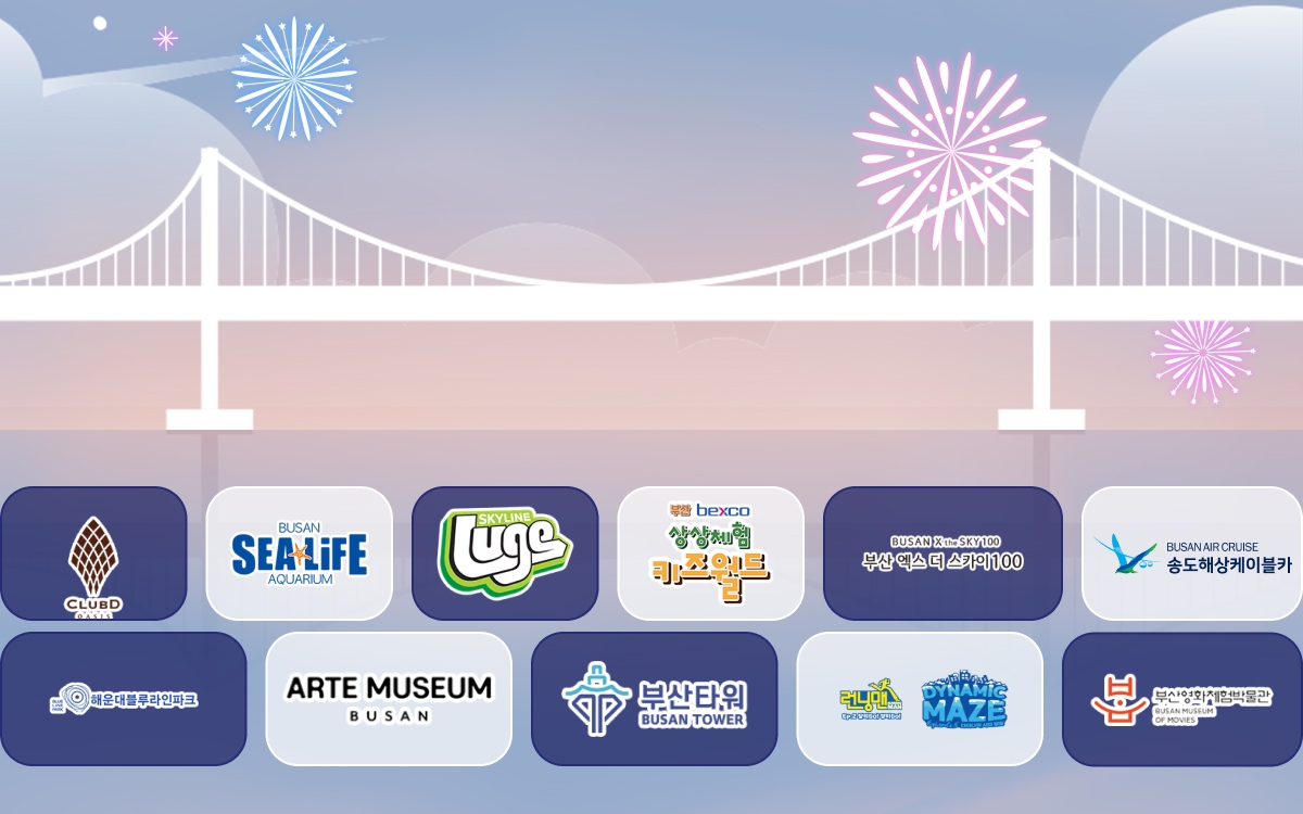 엑스더스카이, 부산타워, 요트투어, 미술관, 체험형 콘텐츠 등 부산 전역의 주요 랜드마크를 한 장의 패키지로 이용할 수 있어요. 🎟️ 사전 예약이 필요한 시설은 미리 일정 조율이 가능하고, 주중·주말 구분 없이 동일하게 사용 가능해요. 대인과 소인 모두 이용할 수 있어 동반 여행에도 편리해요.