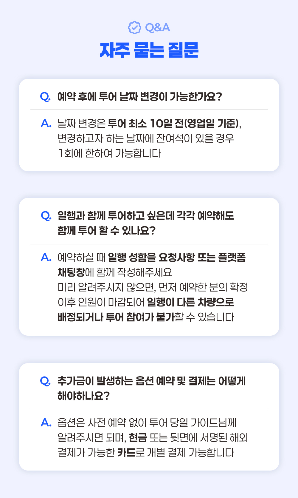 * 유동적인 관광지 이용시간으로 인해, 투어 1~2일 전 확정 미팅 시간에 대한 리마인드 문자 / 알림톡을 발송 드립니다.