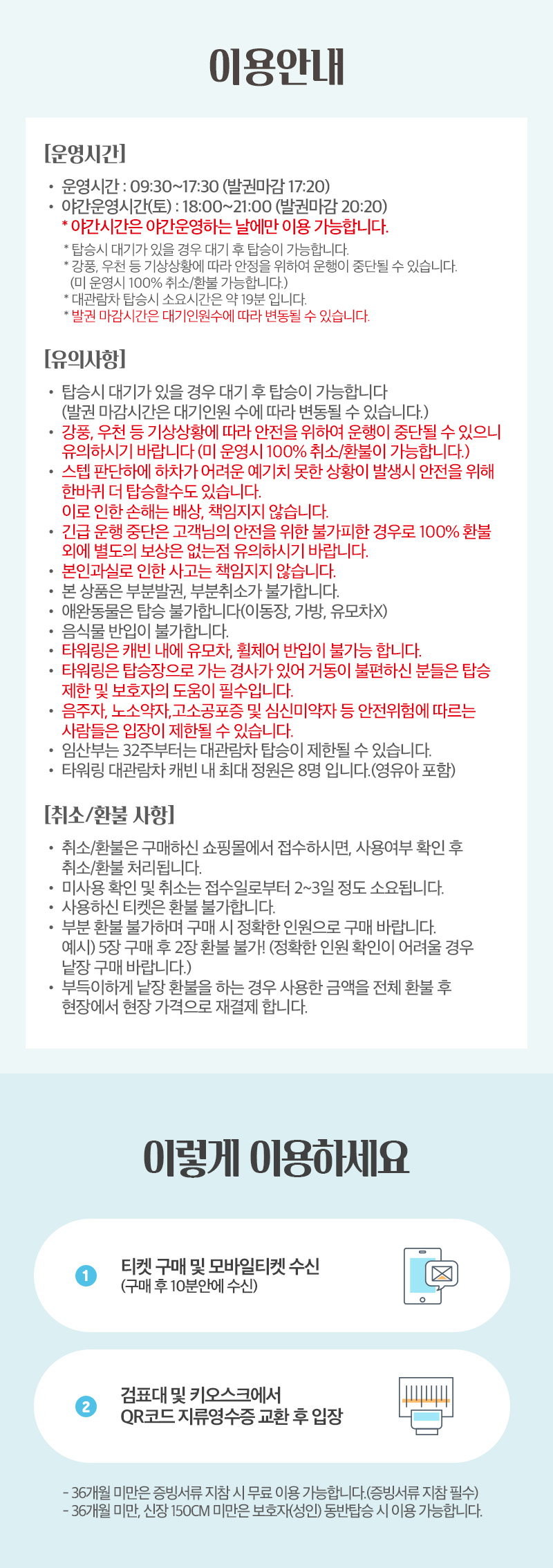 운영 시간은 현장 상황에 따라 변동될 수 있습니다. 이용 전 꼭 홈페이지 또는 업체 유선 확인 부탁드립니다.