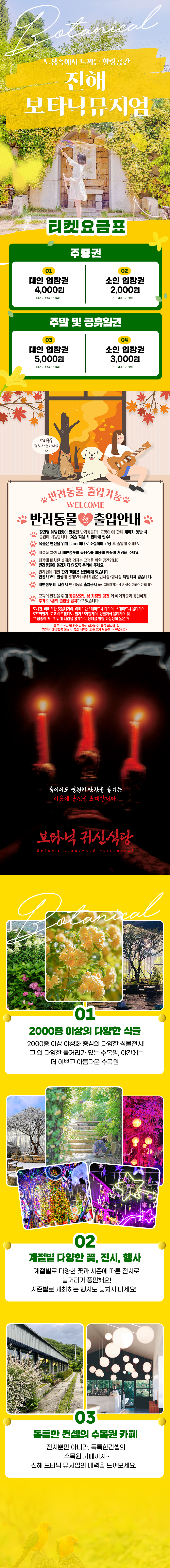 한국어 제공다양한 야생화를 만나고 싶으시다면 진해 보타닉 뮤지엄으로 놀러오세요! 수목원은 낮에만 관람할 수 있다는 생각은 마세요. 밤에도 빛나는 조명아래에서 꽃들을 관람할 수 있어요! 계절과 시즌별로 다양하게 꾸며진 공간들도 만나보세요! 입장권에 커피쿠폰도 포함되어 있어요. 식물이 보이는 카페에서 여유로운 커피 한잔 어떠신가요?