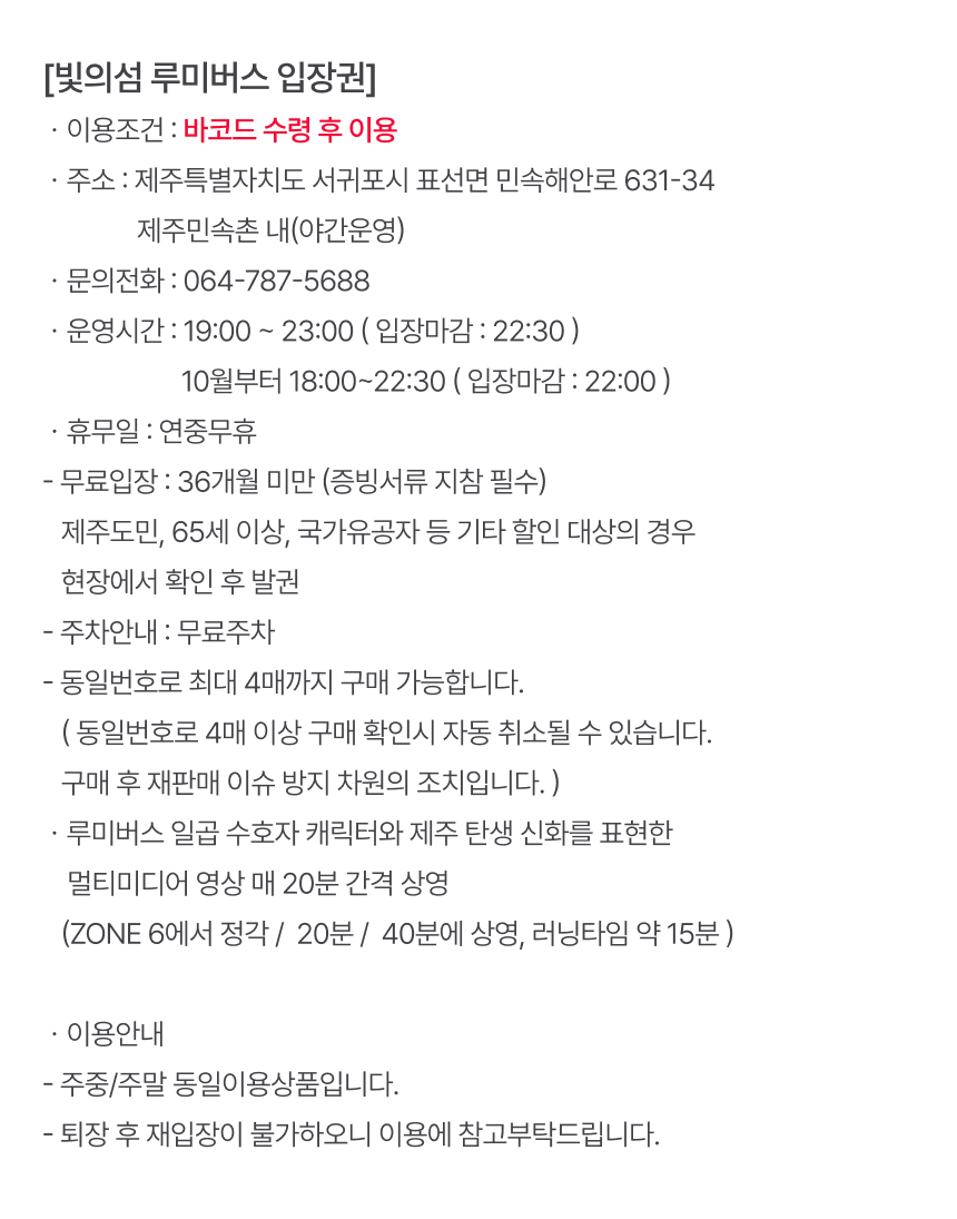 10월 : 오후 18:00 ~ 오후 22:30 (입장마감 : 22:00)