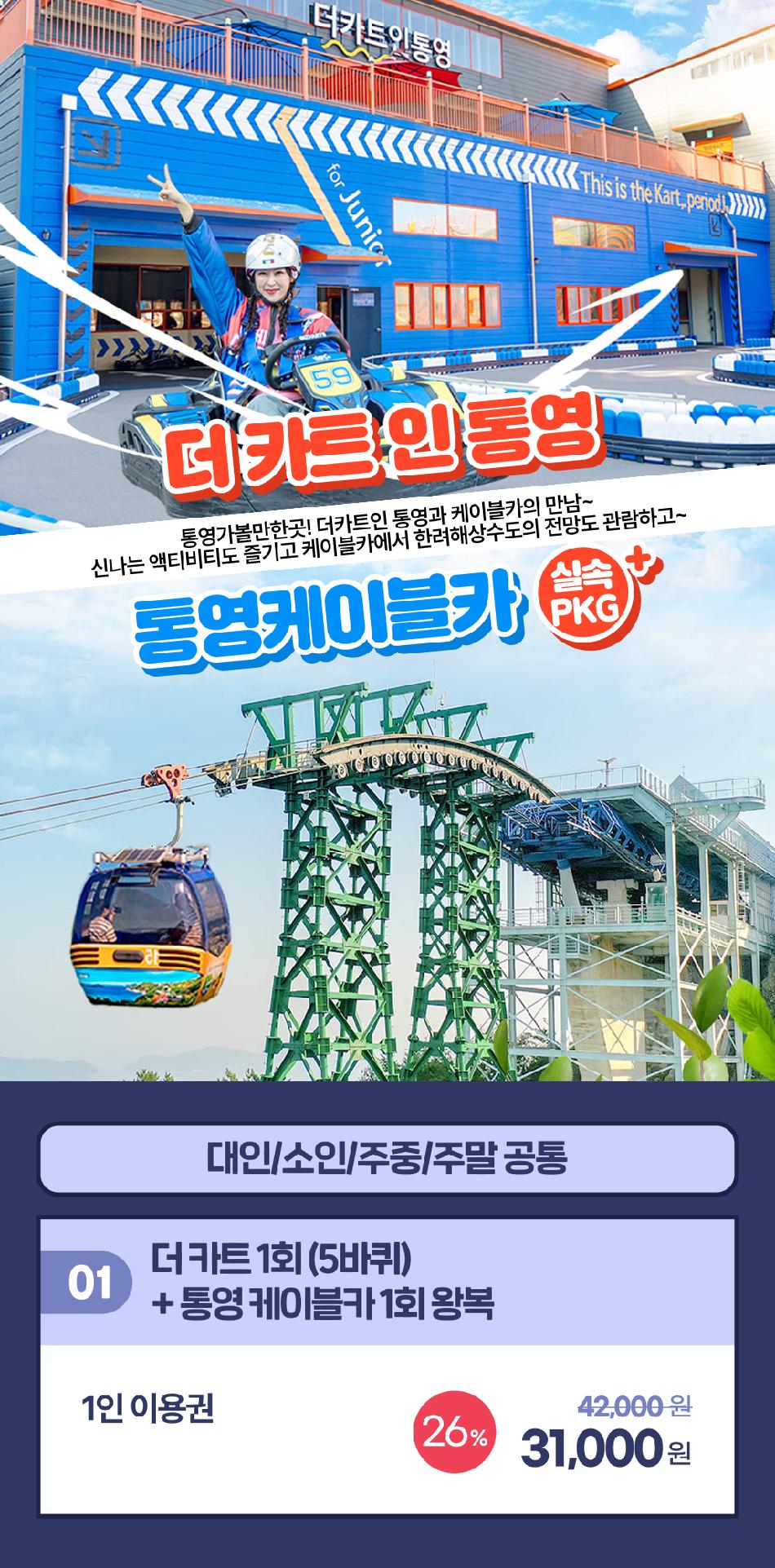 통영 여행 계획을 고민 중이신가요? 그렇다면 더카트인 카트와 통영 케이블카를 추천해요! 멋진 통영의 풍경을 감상하고 즐거운 추억을 만들 수 있어요. 성인, 주니어 서킷과 시뮬레이션존, 다양한 부대시설이 있는 '더카트인'에서 스릴만점 카트를 즐길 수 있어요. 통영의 아름다운 한려수도의 경치를 감상할 수 있는 '통영 케이블카' 까지! 통영의 매력을 하나의 티켓으로 즐겨보세요!