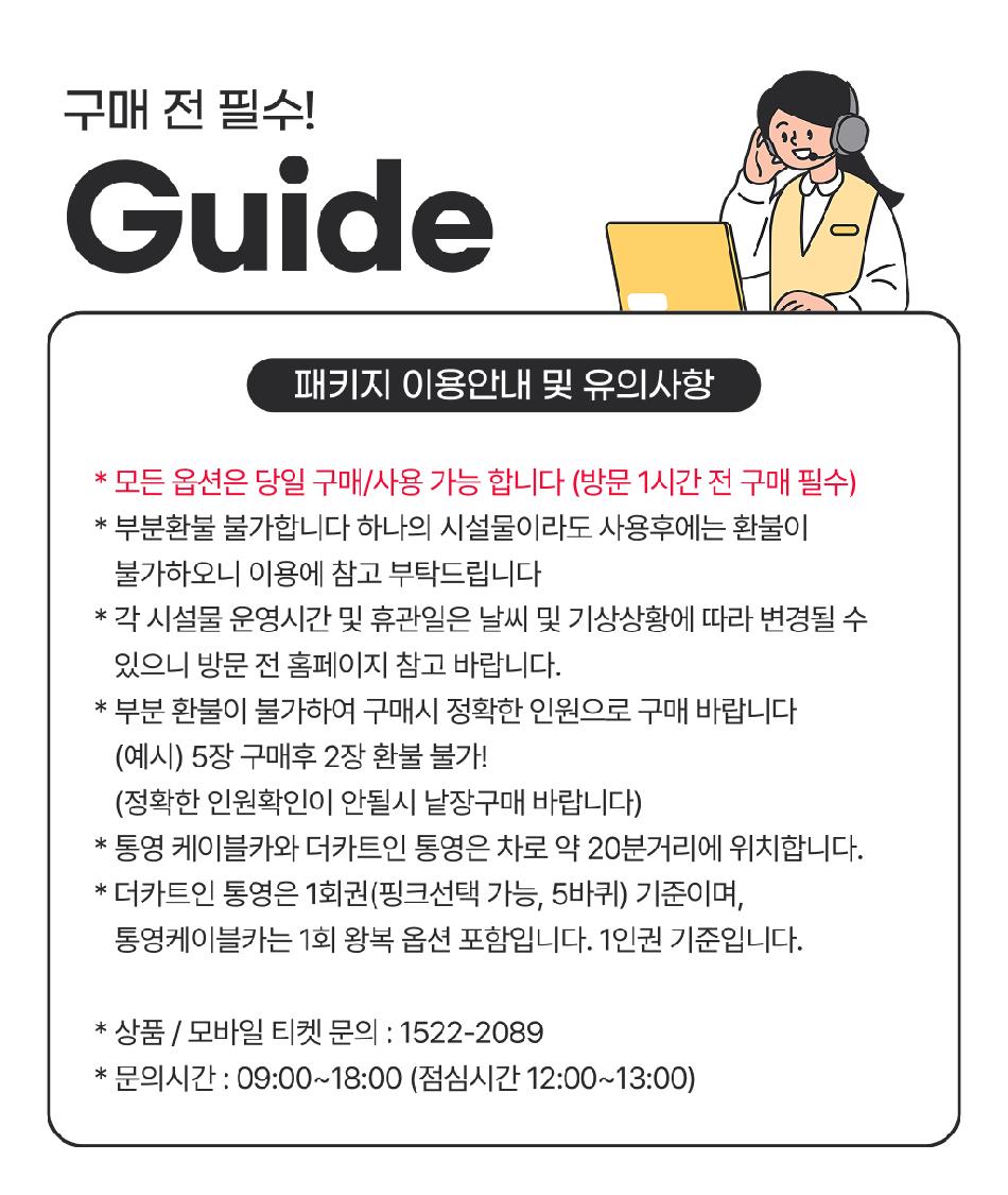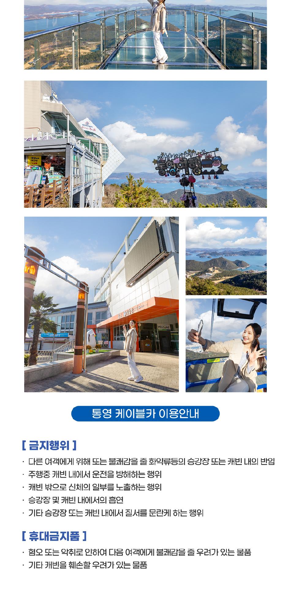 * 강풍 및 우천등 기상상황에 따라 케이블카가 미운행 될 수 있습니다. 기상상황이 안좋을 때는 미리 현장문의 후 이용 바랍니다.