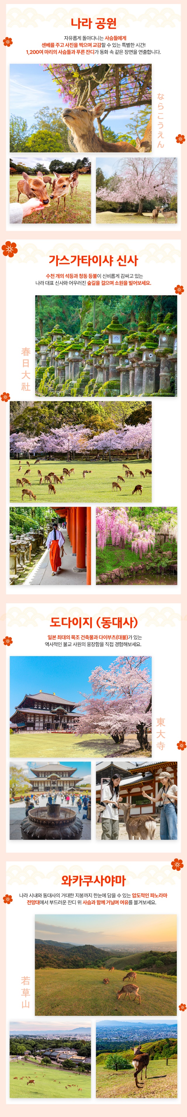 나라공원에서는 귀여운 사슴들과 교감하고, 동대사에서는 웅장한 대불상을 만나고, 고즈넉한 분위기의 가스가타이샤 신사까지 방문하는 완성도 높은 일일 투어로 떠나보세요!