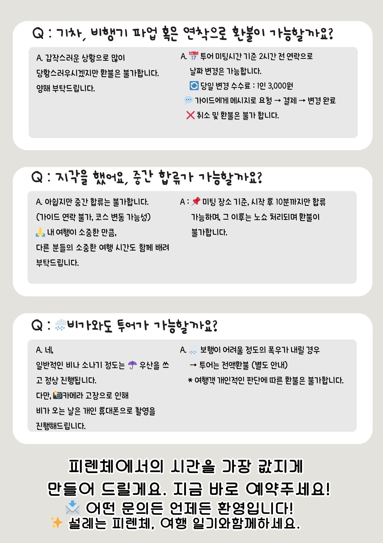 • 예약 취소 및 환불 요청은 영업시간 내에 요청해 주신 후 취소 확인을 받으셔야 합니다.