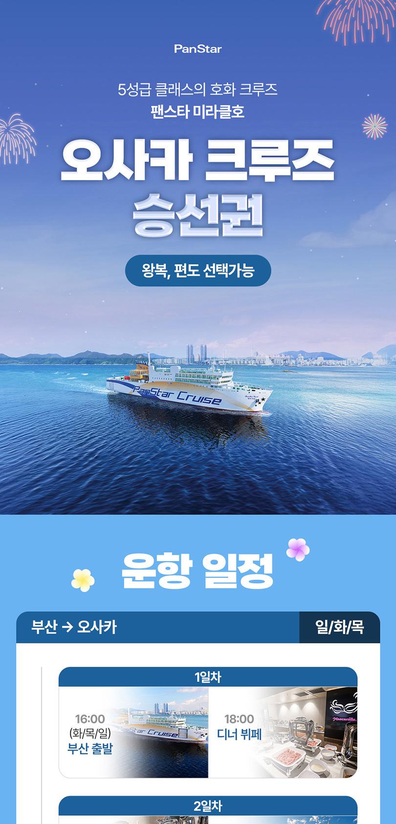 부산과 오사카를 잇는 감성 항해의 시작, 팬스타 미라클 크루즈는 5성급 호텔을 연상시키는 세련된 인테리어와 품격 있는 휴식, 그리고 바다 위에서만 누릴 수 있는 다양한 즐길거리로 특별한 여정을 선사해요. 🚢✨