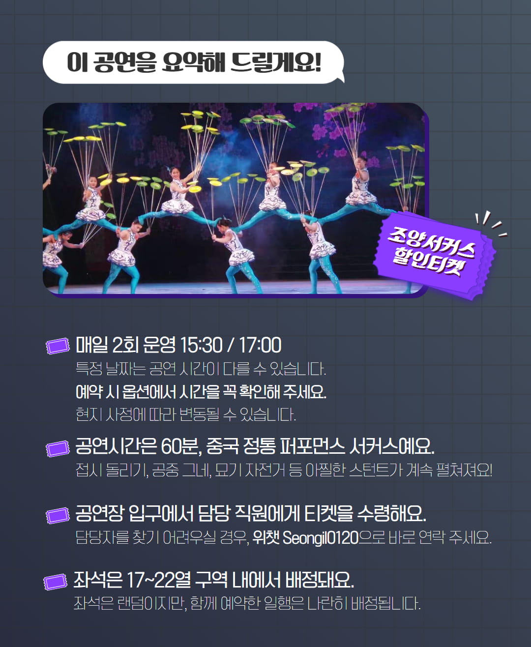 ✅ 공연 날짜마다 시간이 다르니, 관람 전 꼭 확인해 주세요.