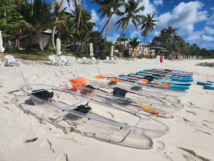 스타 샌드 프라이빗 비치에서 아름다운 자연을 벗 삼아 맛있는 바비큐 점심 식사를 할 수 있는 투어예요. 오전부터 스노쿨링, 카약 등 해양 액티비티를 즐긴 후, 굶주린 배를 맛있는 점심식사로 채워 보세요. 바다를 보며 맛있는 식사를 하는 순간은 괌 여행에서 잊지 못할 순간이 될 거예요. 식사를 준비해서 올 필요도 없고, 모든 해양 액티비티 준비물이 다 준비되어 있어요. 아쿠아슈즈를 포함한 스노클링 장비, 구명조끼를 무료로 대여해 보세요. 화장실, 샤워실, 개인 라커까지 모두 사용할 수 있으니 무거운 짐은 모두 락커에 맡겨두고 몸도 마음도 가볍게 바다를 즐길 수 있어요.