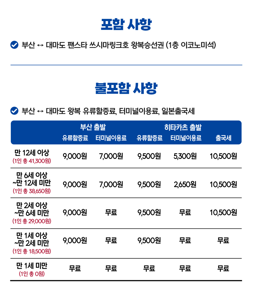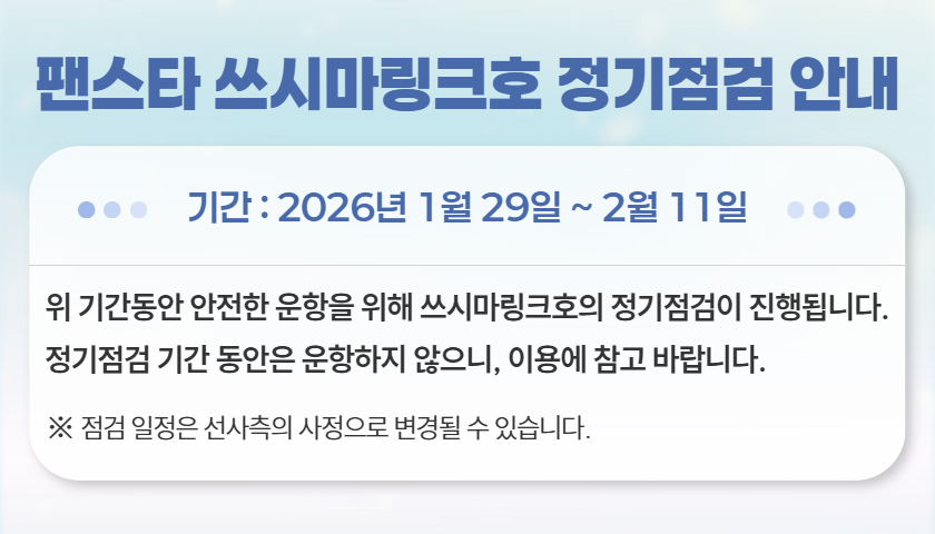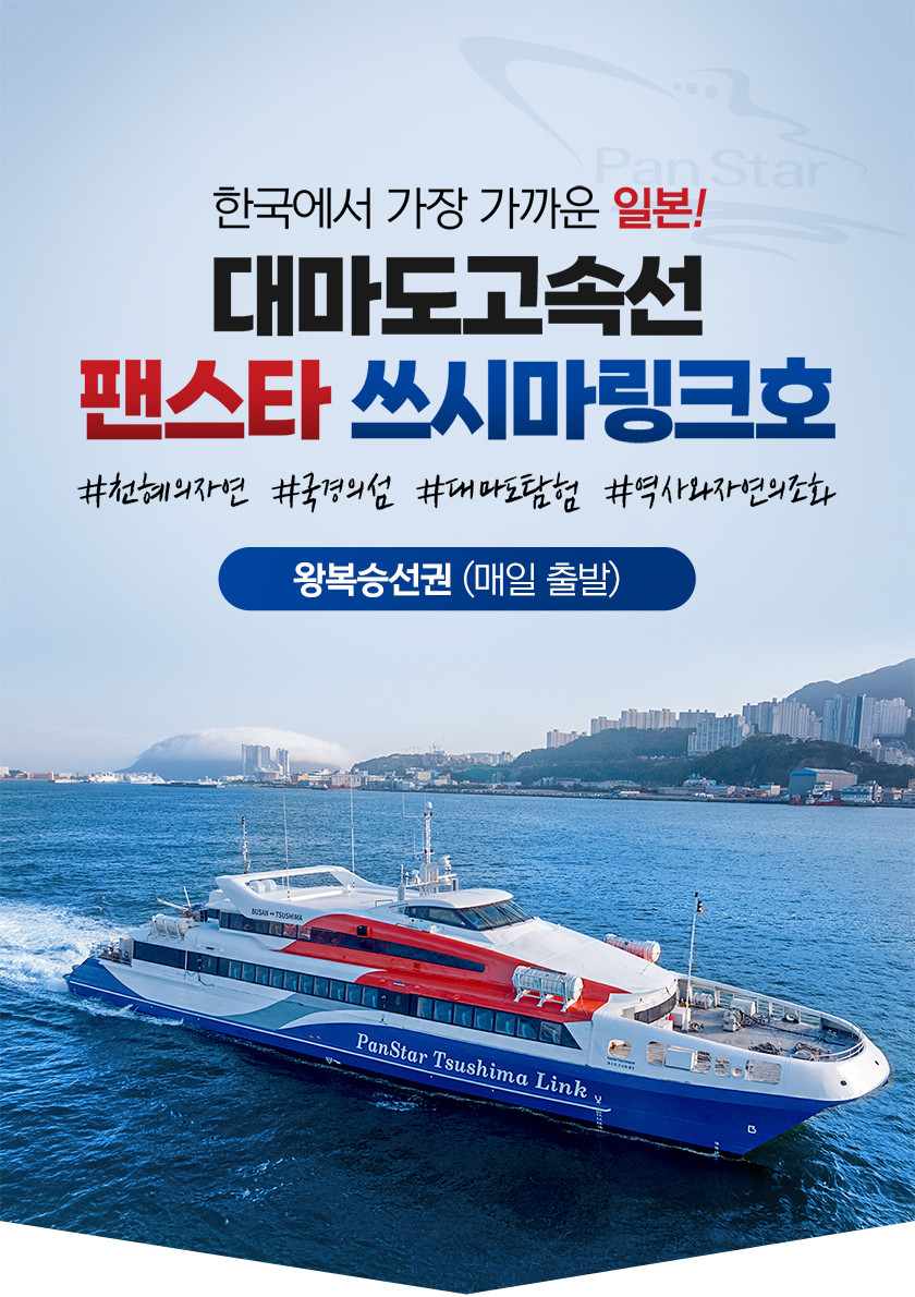 * 2026.01.29 ~ 2026.02.11 기간, 팬스타 쓰시마링크호 정기점검으로 인해 휴항입니다.