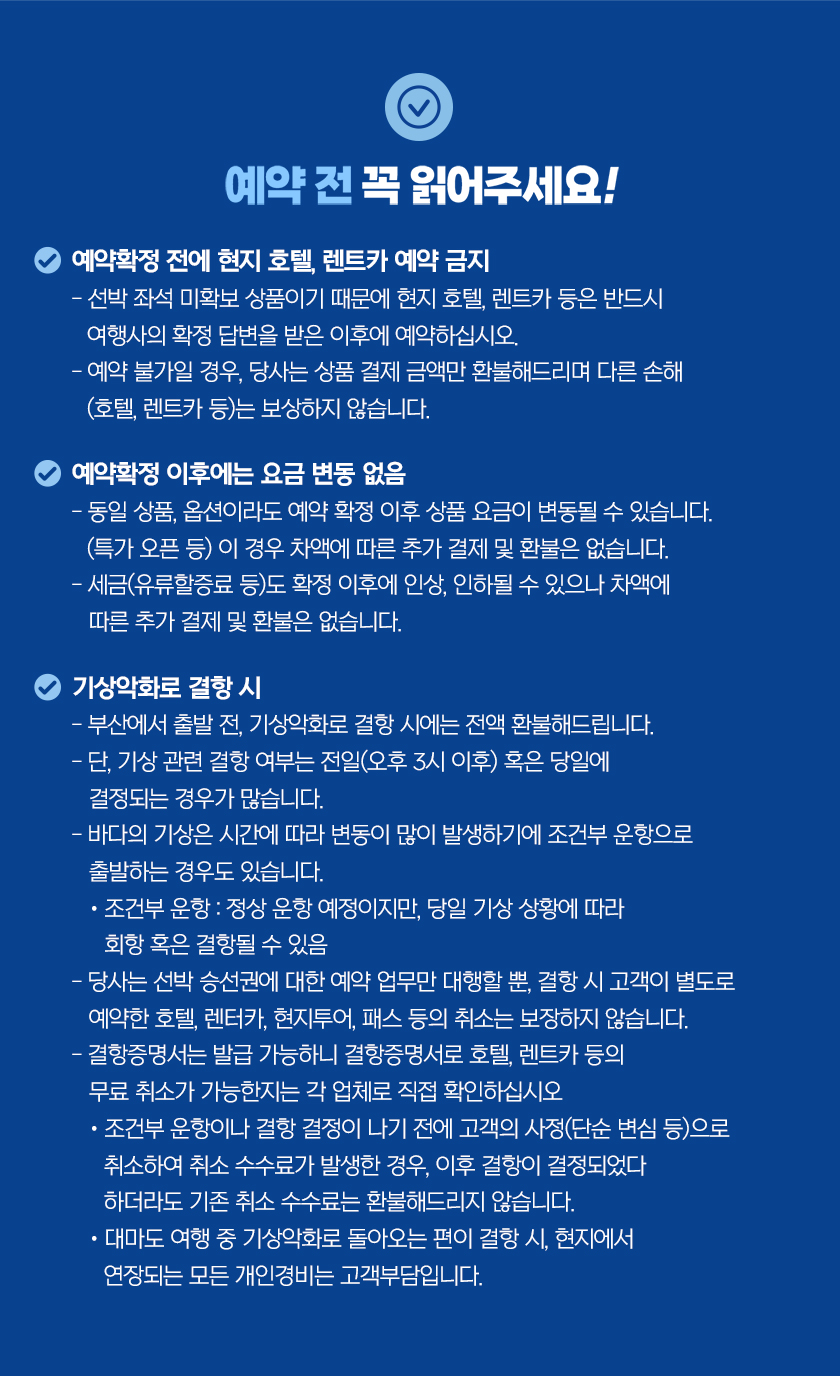 * 운항일정은 현지사정 및 천재지변으로 변경될 수 있습니다.
