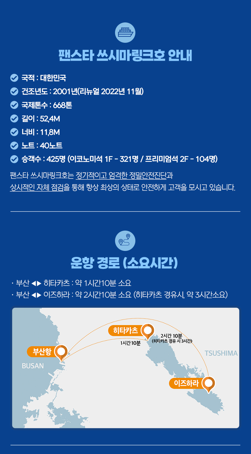 * 성수기/준성수기 기간 월요일 출발편은 이즈하라 기항없이 히타카츠 왕복으로만 운항합니다.