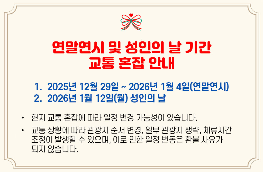 * 버스 출발 시간까지 탑승을 못하시는 경우, 당일 노쇼 처리됩니다.