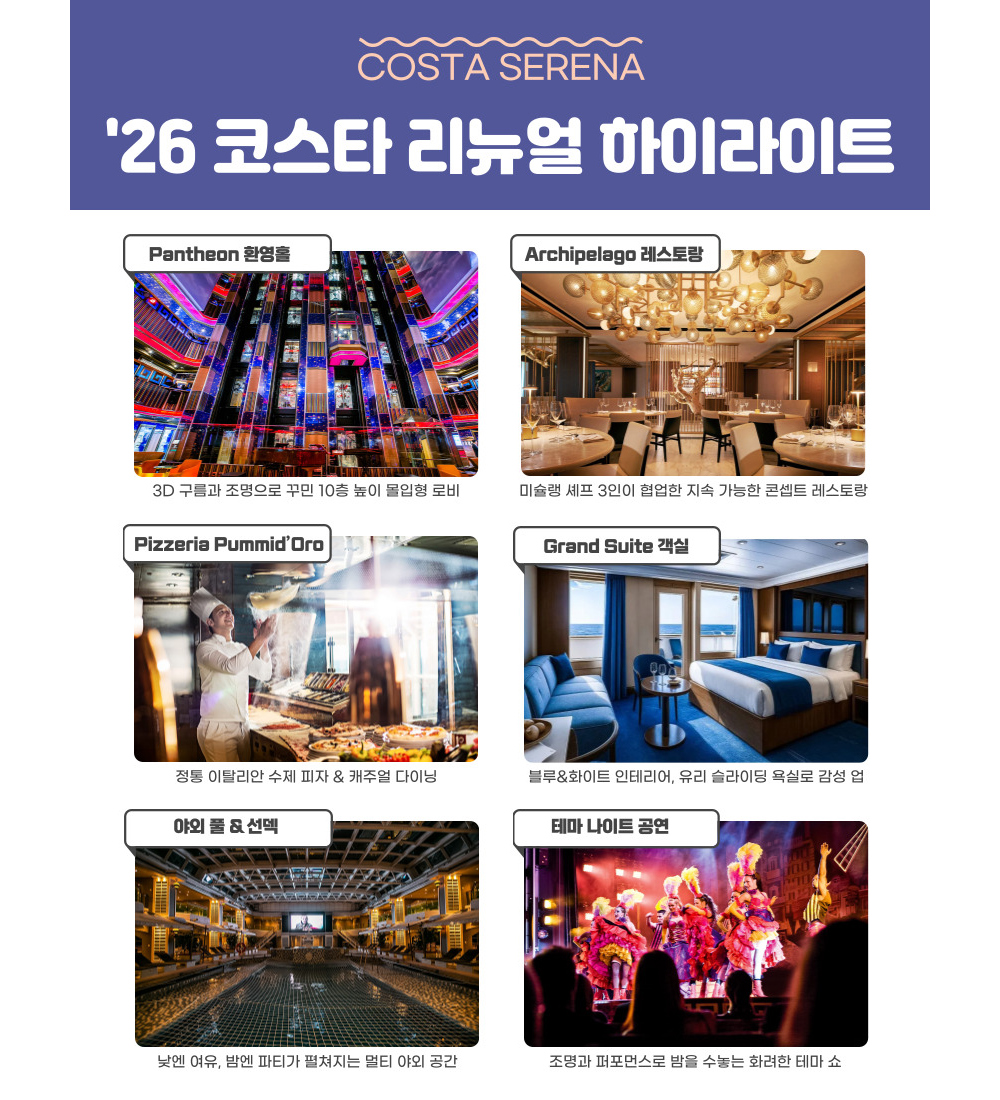 관광과 휴양, 미식과 감성이 하나로 어우러진 코스타 세레나 크루즈 5박 6일!