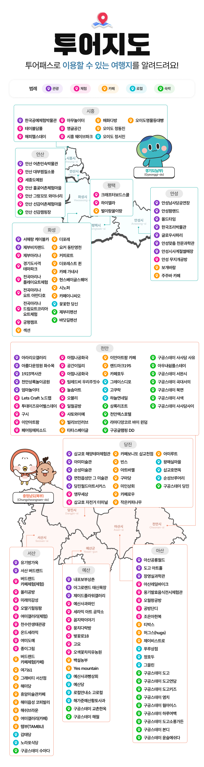 충청남도와 경기도를 자유롭게 넘나들며 나만의 특별한 여행을 만들고 싶으신가요? 충남-경기 베이밸리투어패스는 서해안의 아름다운 베이밸리 지역을 원하는 만큼 떠날 수 있는 최고의 가성비 여행 패스예요. 복잡한 계획 없이 하나의 패스만 있으면 베이밸리의 숨겨진 매력을 모두 경험할 수 있어요.