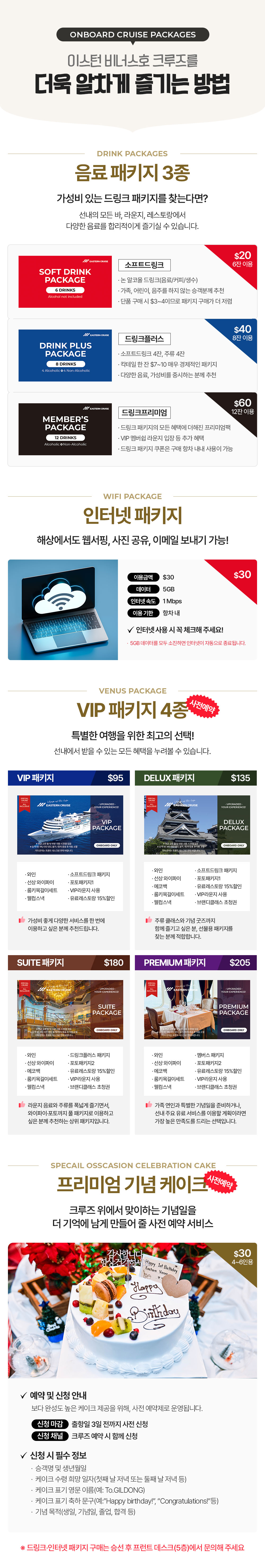 한국형 정통 크루즈 이스턴 비너스호는 100% 한국어 서비스, 한국인 입맛에 맞는 한식 & 뷔페 중심으로 남녀노소 편안한 여행을 제공합니다. 특급 호텔급 객실과 올인클루시브 서비스, 그리고 배 위에서 펼쳐지는 다채로운 선상 공연까지 더해져 바다 위에서의 하루를 특별한 휴식으로 채워줄 거예요. 특히 주말에 가볍게 떠난다는 점이 가장 큰 매력이에요.