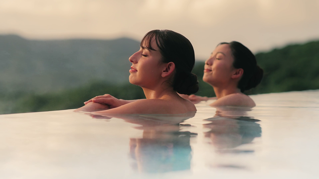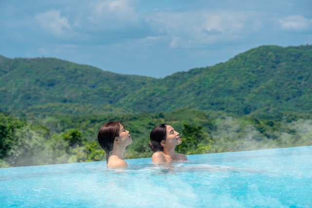 진녹색의 압도적인 녹음과 드넓은 푸른 하늘. 그 절경을 비추는 인피니티 욕조에 조용히 몸을 담근다. 웅대한 남국의 하늘 아래 세계자연유산으로 등재된 산림지대 '얀바루'의 산들과 나 자신이 하나가 된 듯한 감동을 선사한다. 남국의 리조트다운 세련된 실외공간에는 칼슘온천과 사우나가 있고 실내에는 동굴온천과 피부미용 효과가 있는 천연온천 등이 있어 힐링의 시간을 다양하게 즐길 수 있다.