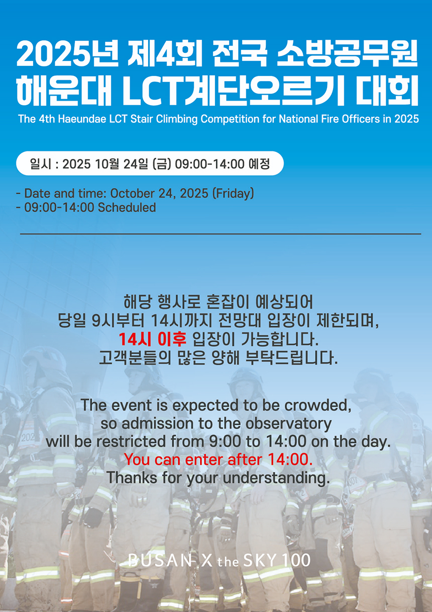 또한, 환상적인 미디어 어트랙션과 함께, 99층에 위치한 스카이 99 레스토랑에서는 최고의 전망을 배경으로 뉴욕 스타일 스테이크를 맛볼 수 있는 프리미엄 서비스까지 제공돼요. 엑스더스카이 전망대에서 부산의 낮과 밤을 오롯이 느끼며, 사랑하는 이들과 함께 하늘 위에서 특별한 추억을 가득 담아 가세요!